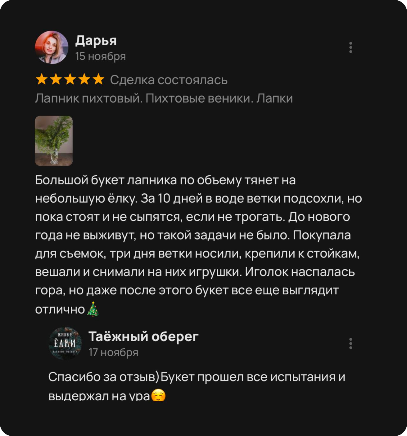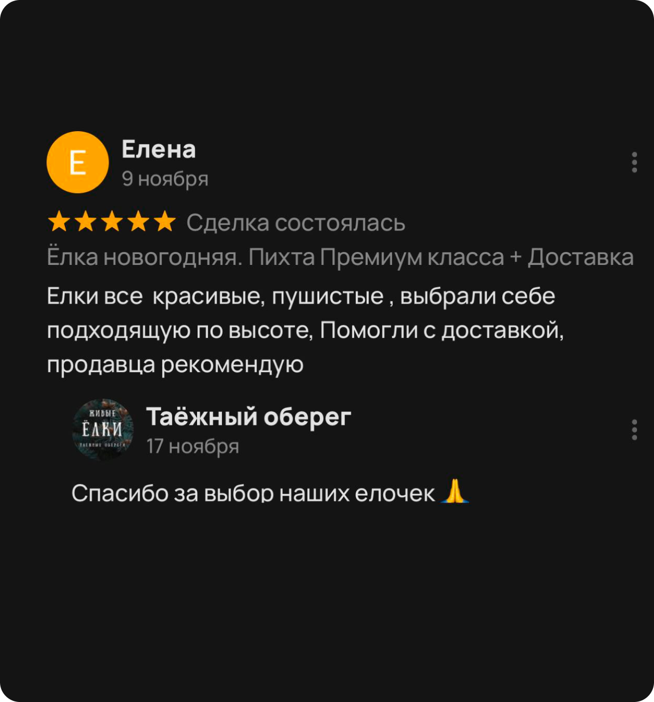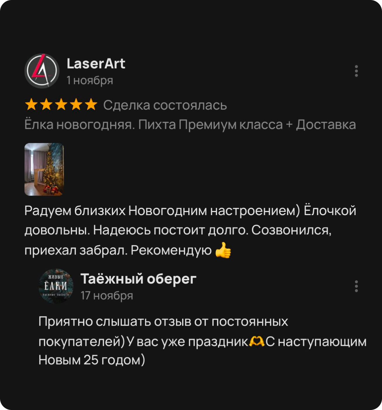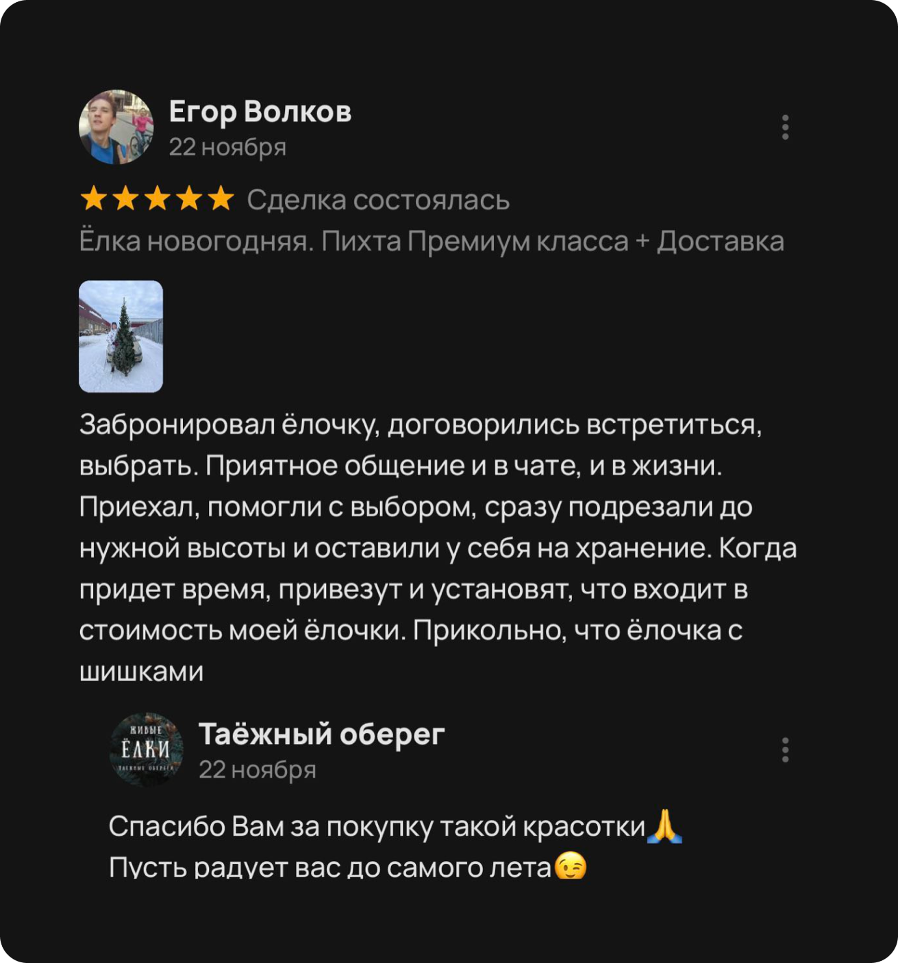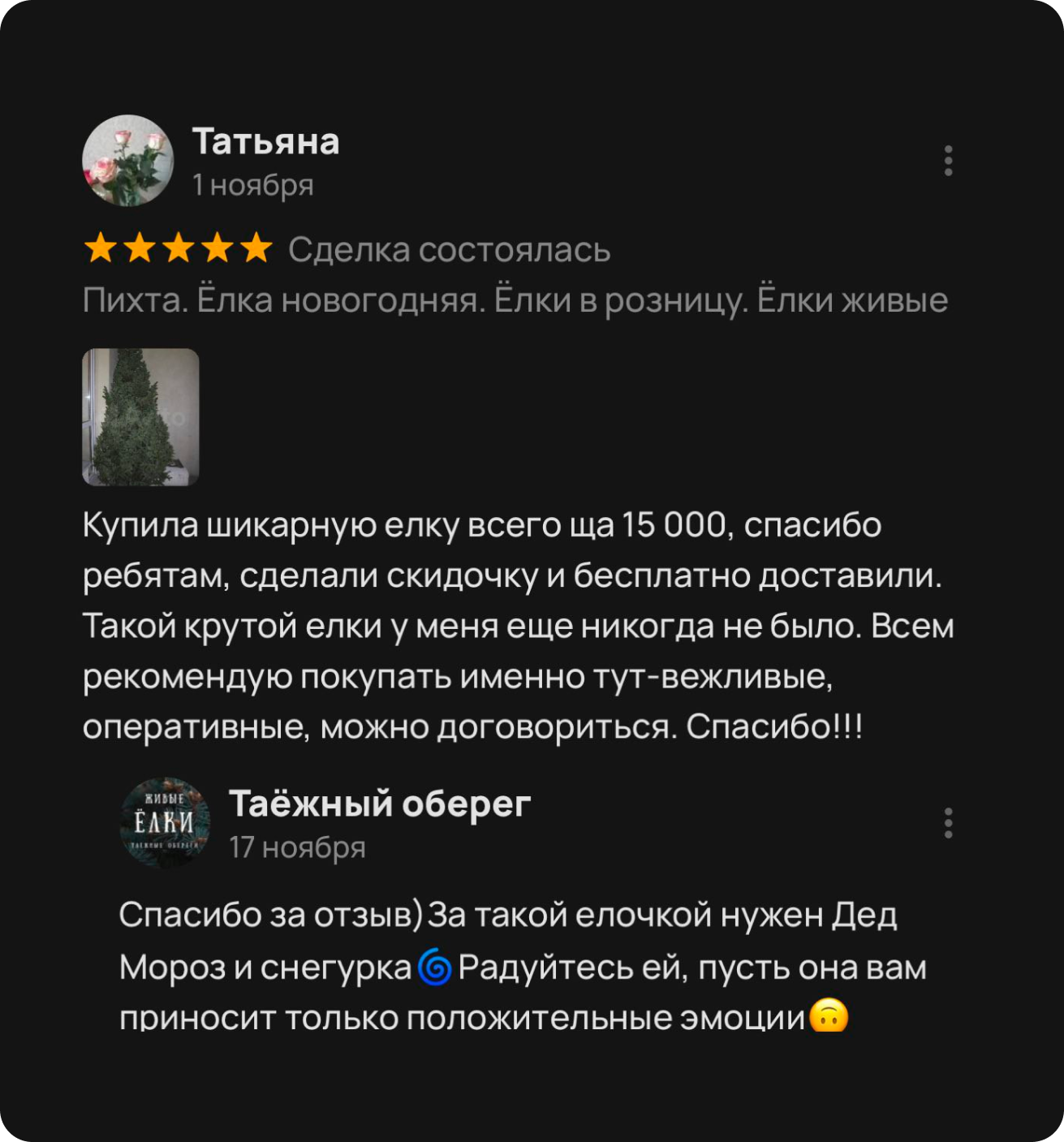 — На «ЕЛОЧНОМ БАЗАРЕ» возле ТЦ ЛЕТО с 15 декабря — Самовывозом;